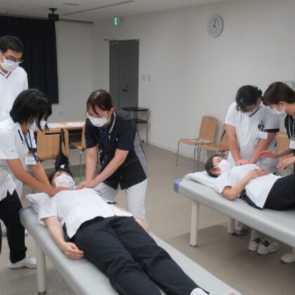 入院患者には長期でベッド臥床の方も多くいます。 呼吸改善のためリハビリ面から、スクイージングのやり方を実際に体験し、患者・・・