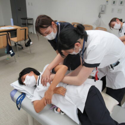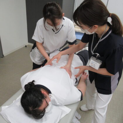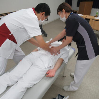 呼吸改善のためリハビリ面から、スクイージングのやり方を実際に体験し、患者の気持ちを理解することのできる研修でした。